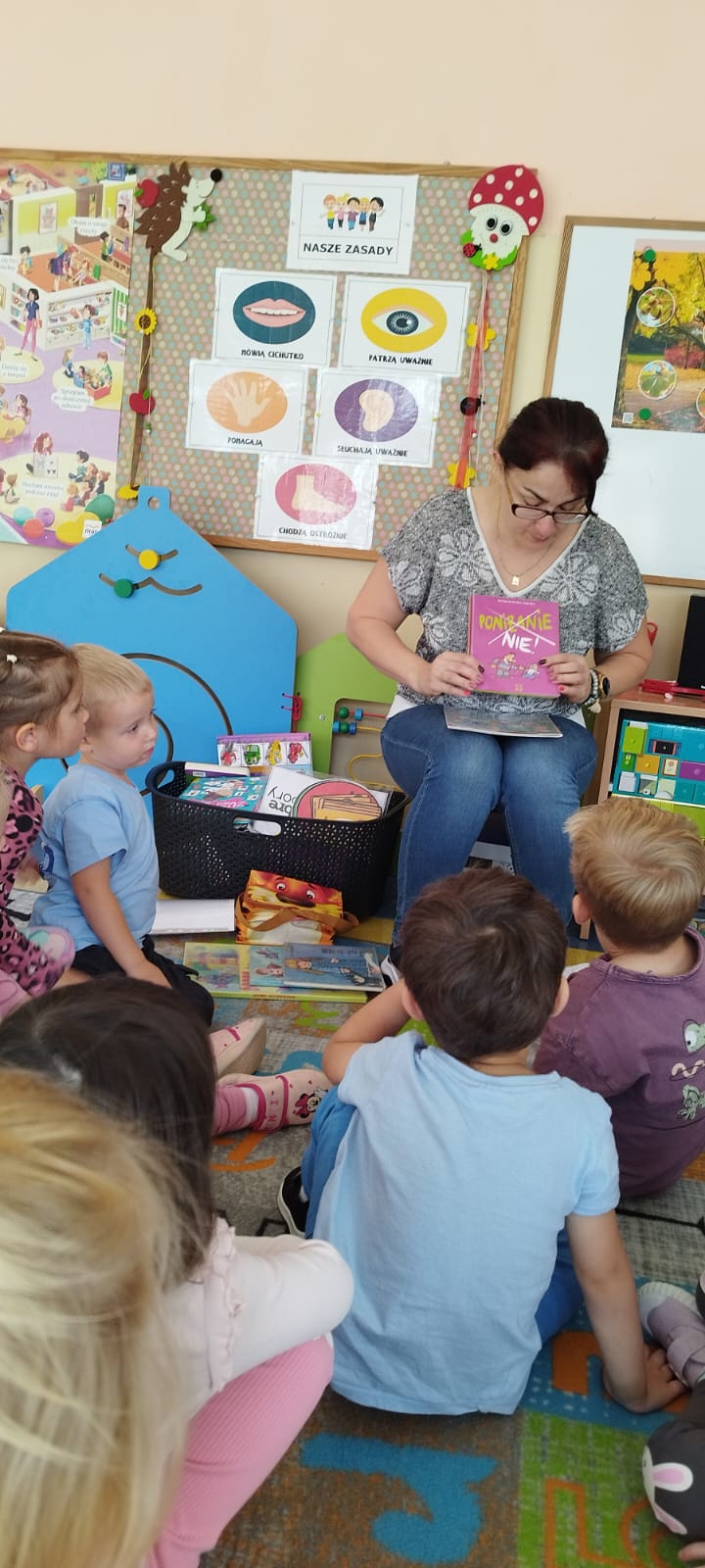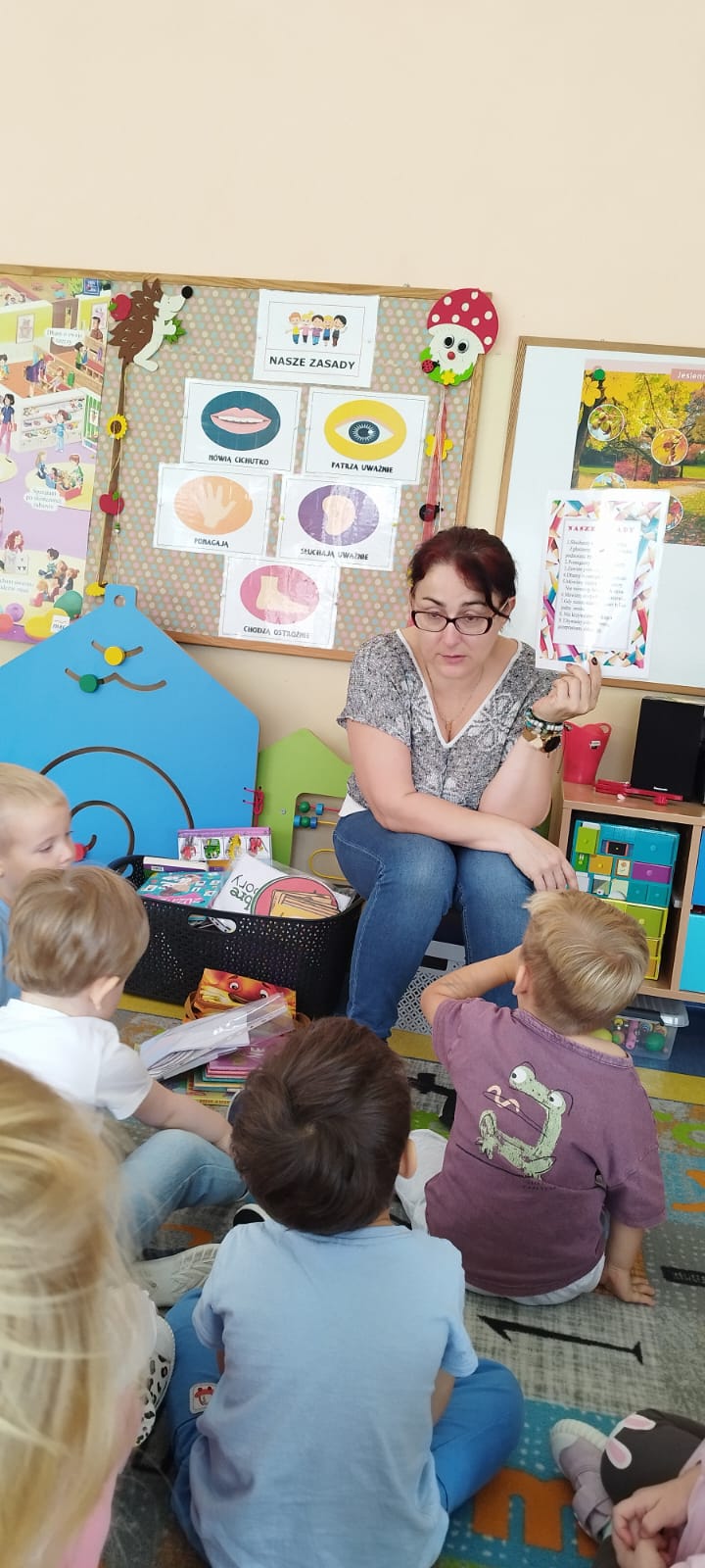 W ramach obchodów Tygodnia Budowania Relacji nasze przedszkole odwiedziła Pani z biblioteki, która przygotowała dla dzieci spotkanie z literaturą dziecięcą. Przedszkolaki z dużym zainteresowaniem słuchały opowiadań o przyjaźni, wzajemnym szacunku i współpracy. Czytane utwory stały się okazją do rozmów o tym, jak budować dobre relacje z rówieśnikami oraz jak okazywać sobie życzliwość na co dzień.