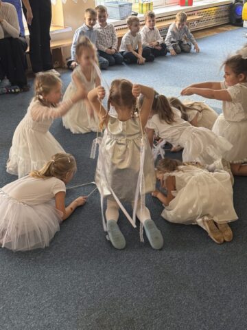 Udział dzieci z grupy II i IV w Jasełkach organizowanych przez uczniów ze Szkoły Podstawowej nr 5 w Jaworznie