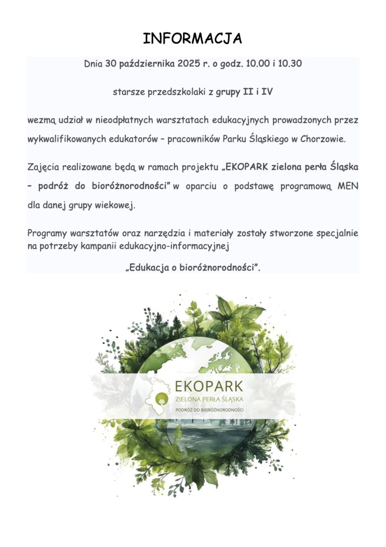Informujemy, że w dniach 29.09 – 3.10 nasze przedszkole bierze udział w ogolnopolskiej inicjatywie